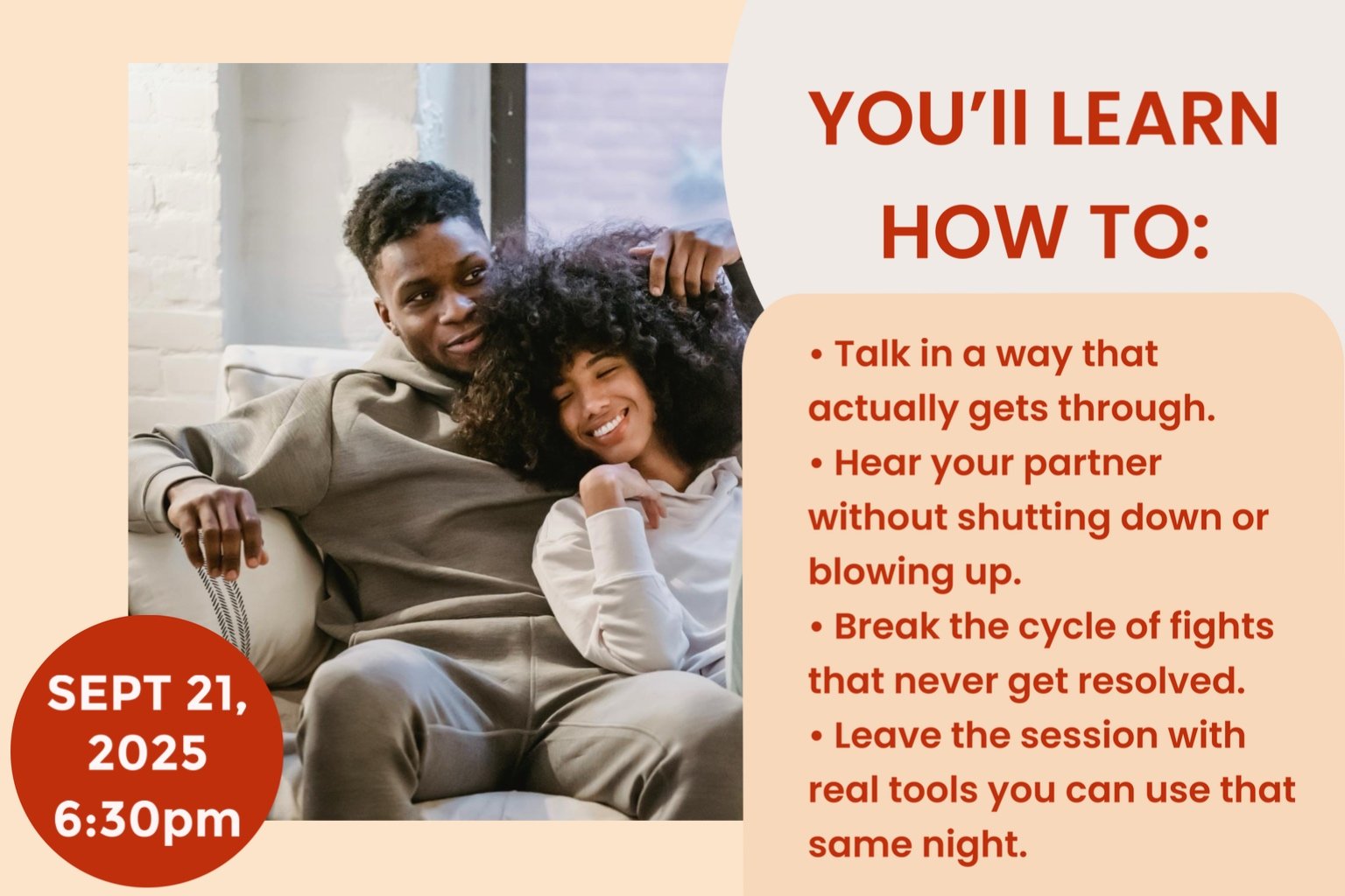 Most couples spend years repeating the same conversations. In this live 45-minute coaching reset on September 21, you will learn 7 proven communication tools that will help you talk, listen, and finally feel understood.